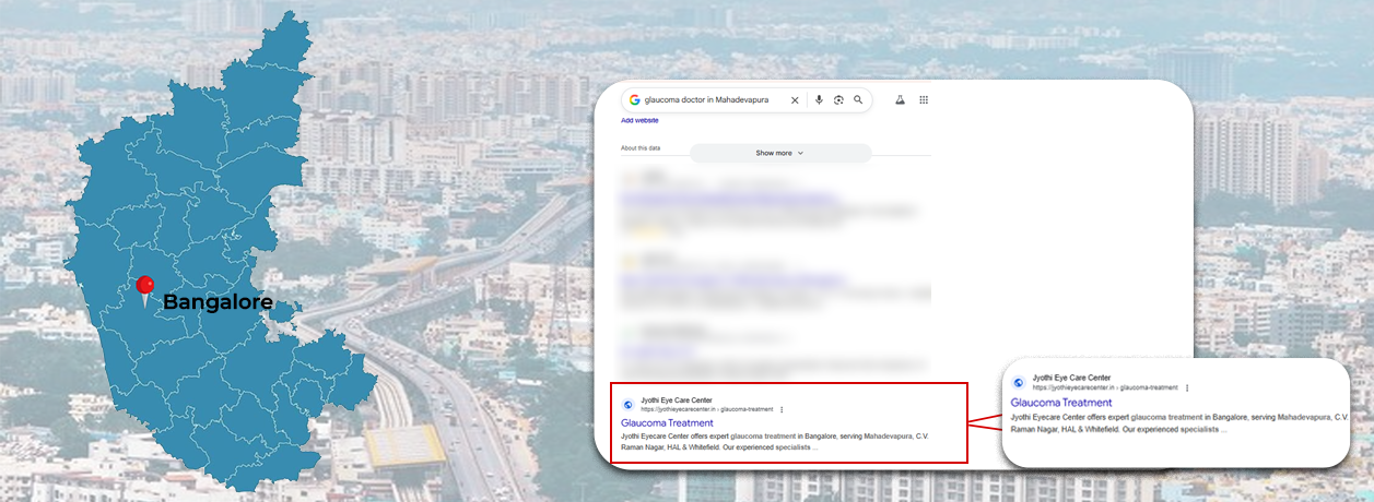 Important queries like eye care clinic in HAL Bangalore and retina specialist near Marathahalli were not ranking well